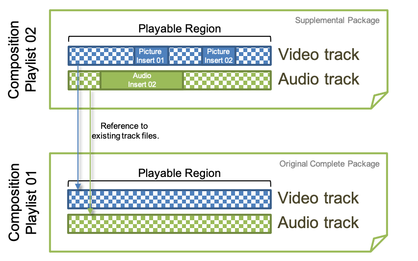 It is not uncommon for issues to be detected in essence during the Quality Control (QC) process after delivery. Such issues can be a sound track replacement, picture inserts due to poor quality or aesthetic revisions. Such fixes are ideally delivered as a supplemental package that contains a newly created Composition Playlist, a Packing List, Assetmap and a number of picture or sound MXF track files acting as inserts.